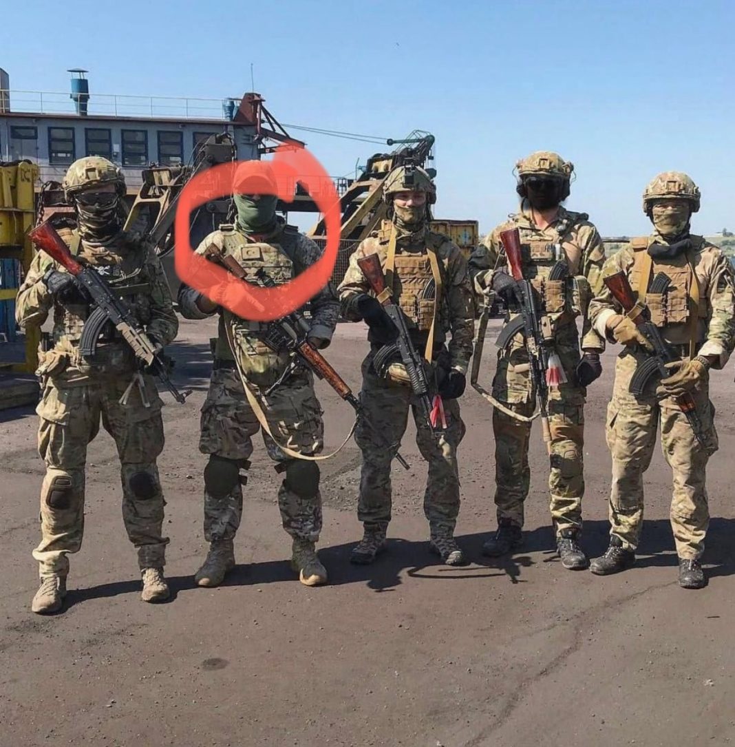 Φωτογραφια που κυκλοφορεί στο διαδίκτυο δείχνει ομάδα Ουκρανών στρατιωτών με ένα στρατιώτη να φέρει σήμα με την ημισέληνο.