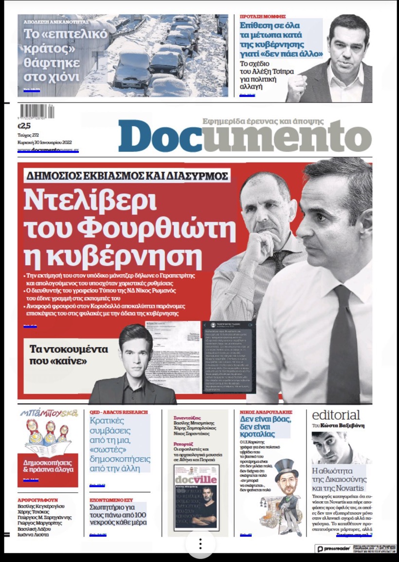 Αποκαλυπτικη και αυτή την Κυριακή η εφημεριδα Documento του Κωστα Βαξεβάνη.