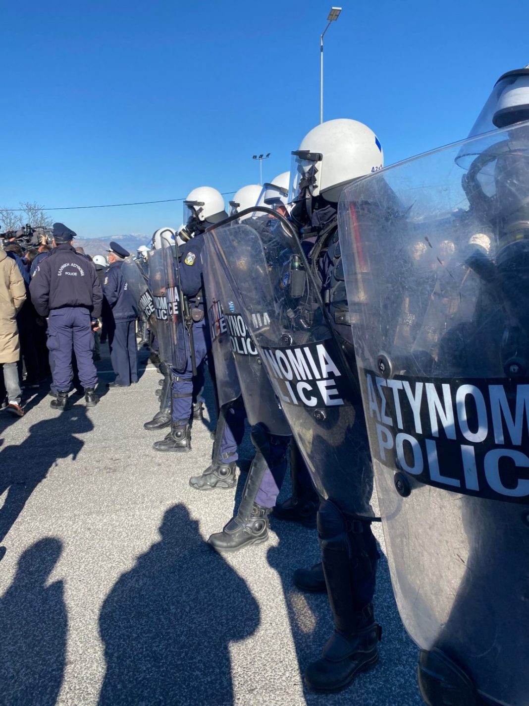 “Ντροπή δεν είμαστε εγκληματίες.Δεν περιμέναμε τόσες αστυνομικές δυνάμεις”.Κανοντας έκκληση στους αστυνομικούς να τους αφήσουν να περάσουν.
