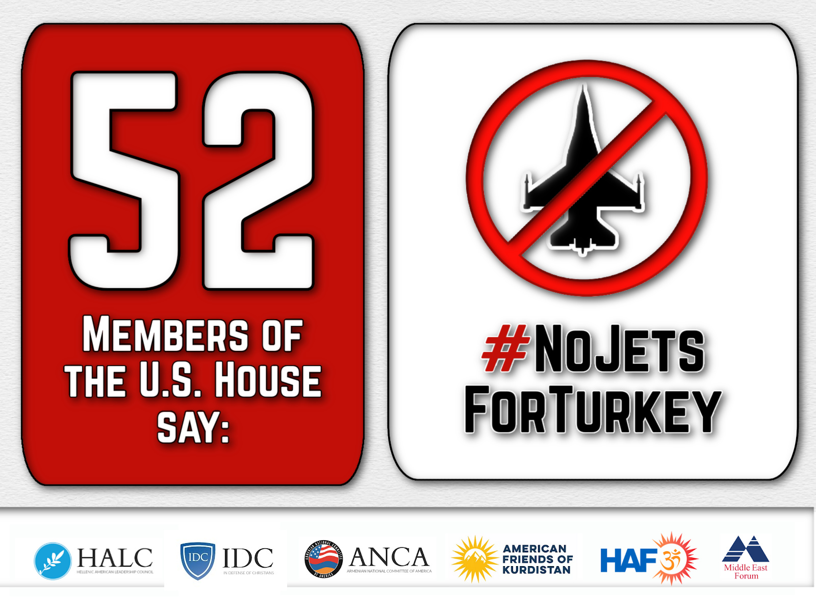 Μια ξεχωριστή επιστολή με επικεφαλής τη βουλευτή Νικόλ Μαλλιωτάκη (R-NY) και συνυπογράφηκε από 10 συναδέλφους της Βουλής τον περασμένο Οκτώβριο, προέτρεψε επίσης τον Πρόεδρο Μπάιντεν και τον Γραμματέα Μπλίνκεν να αρνηθούν το αίτημα της Τουρκίας. «Όσο ο Πρόεδρος Ερντογάν προωθεί το επεκτατικό του σχέδιο στην Ανατολική Μεσόγειο, η Τουρκία θα συνεχίσει να απειλεί την εθνική μας ασφάλεια και την ασφάλεια των στενότερων συμμάχων μας στην περιοχή – Ελλάδας, Ισραήλ και Κύπρου. Σας προτρέπουμε να ενεργήσετε για το εθνικό μας συμφέρον και για χάρη της σταθερότητας στην Ανατολική Μεσόγειο, αρνούμενοι να ενισχύσετε το γηρασμένο οπλοστάσιο των μαχητικών αεροσκαφών της Τουρκίας και ανυπομονούμε να λάβουμε την απάντησή σας», αναφέρεται στην επιστολή Μαλλιωτάκη