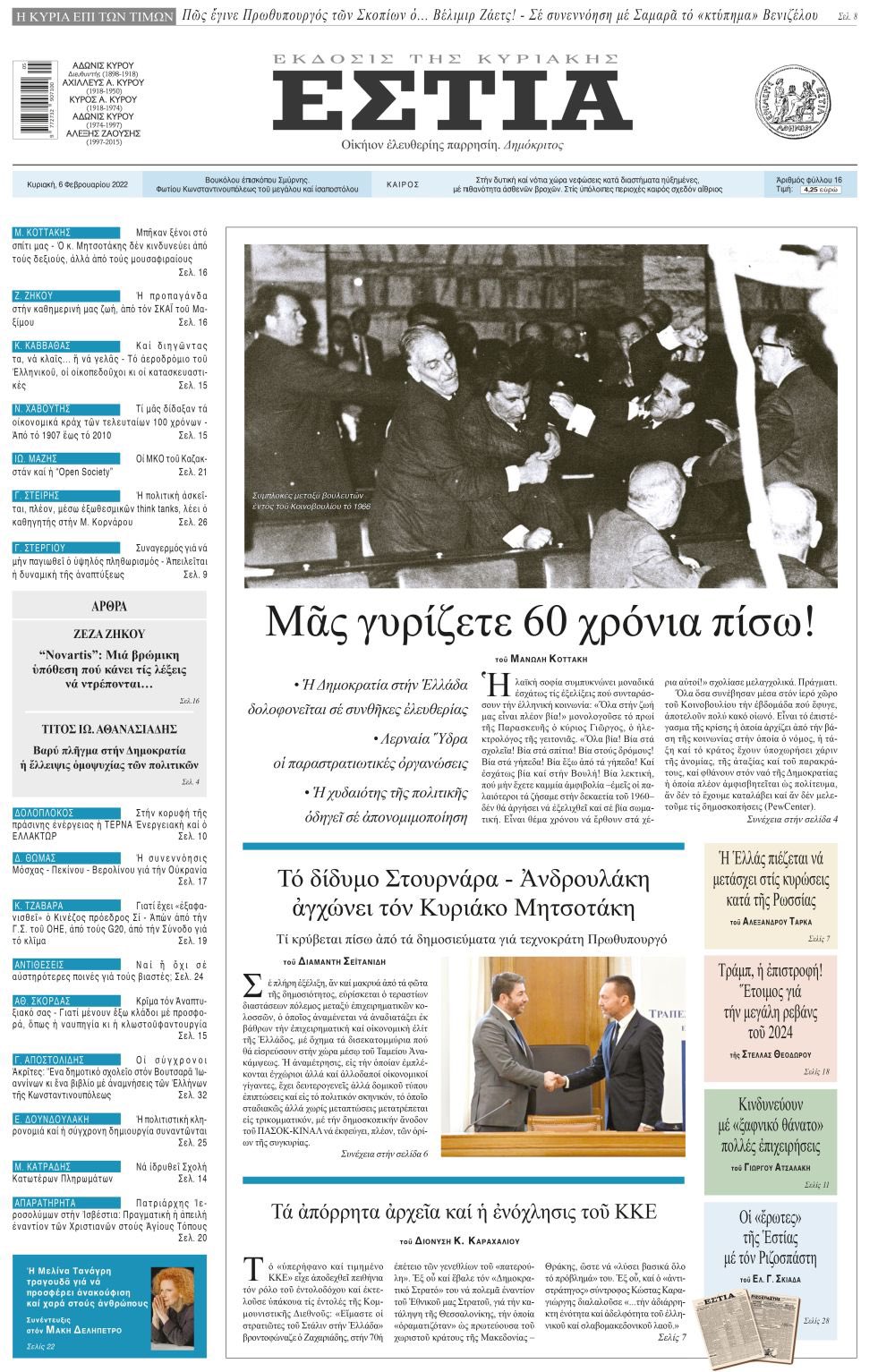 Στην Εστία της Κυριακής: Η συνταγματική αναθεώρηση επισπεύδει τίς εκλογές