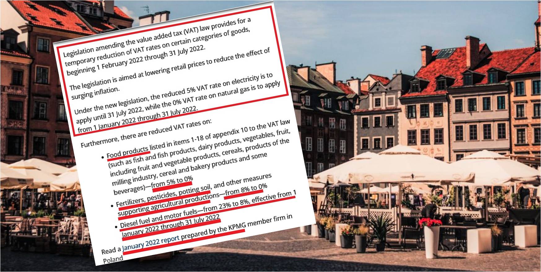 Από τον Δεκέμβριο η πολωνική συντηρητική κυβέρνηση προέβη στην πρώτη μείωση του ΦΠΑ και τώρα ήρθε να ολοκληρώσει την παρέμβαση με τη μεγαλύτερη φοροαπαλλαγή στην ιστορία του πολωνικού κράτους, σε πλήθος ειδών πρώτης ανάγκης.