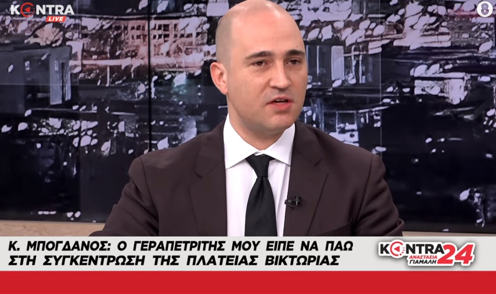 Ο Κωνσταντίνος Μπογδάνος μιλώντας στο #Kontra24 είπε ότι ο Γιώργος Γεραπετρίτης στις 15 Ιουλίου του 2020 τον προέτρεψε να πάει στη συγκέντρωση στην πλατεία Βικτωρίας ενάντια στους πρόσφυγες, στην οποία συμμετείχε και ο χρυσαυγίτης Ηλίας Κασιδιάρης