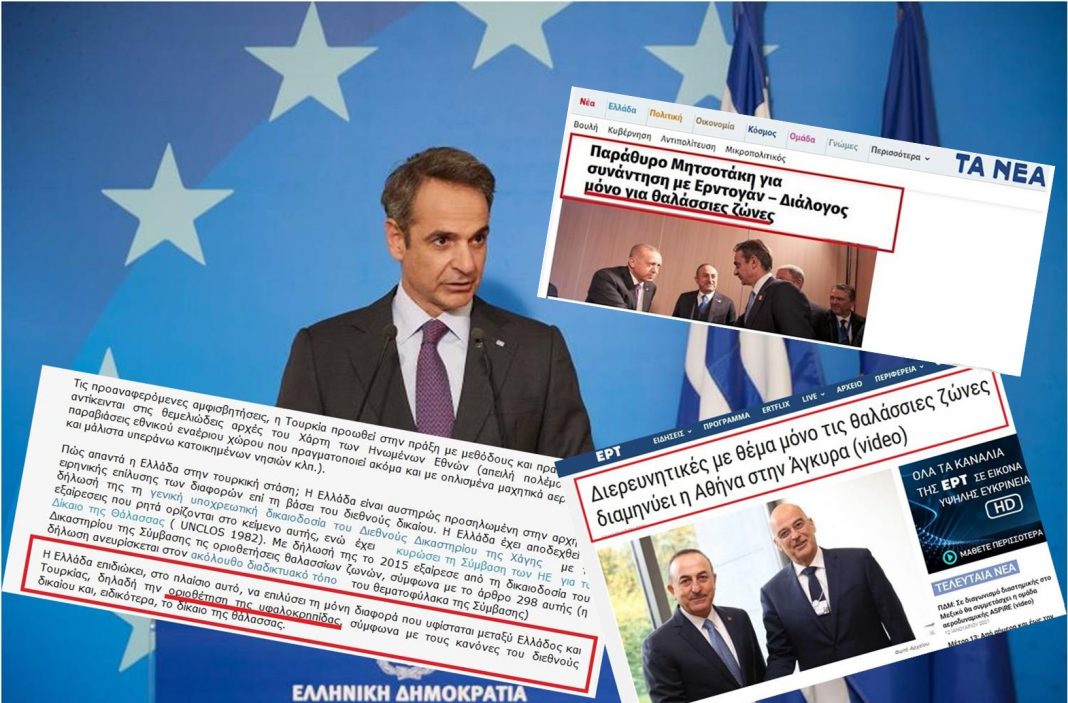Ότι η χρήση του όρου “θαλάσσιες ζώνες” από τον Κυριάκο Μητσοτάκη, δεν είναι μια γλωσσική παραλλαγή, αλλά μια ουσιαστική διαφορά, καθώς εισάγει στη διαπραγμάτευση και το φλέγον θέμα των χωρικών υδάτων.