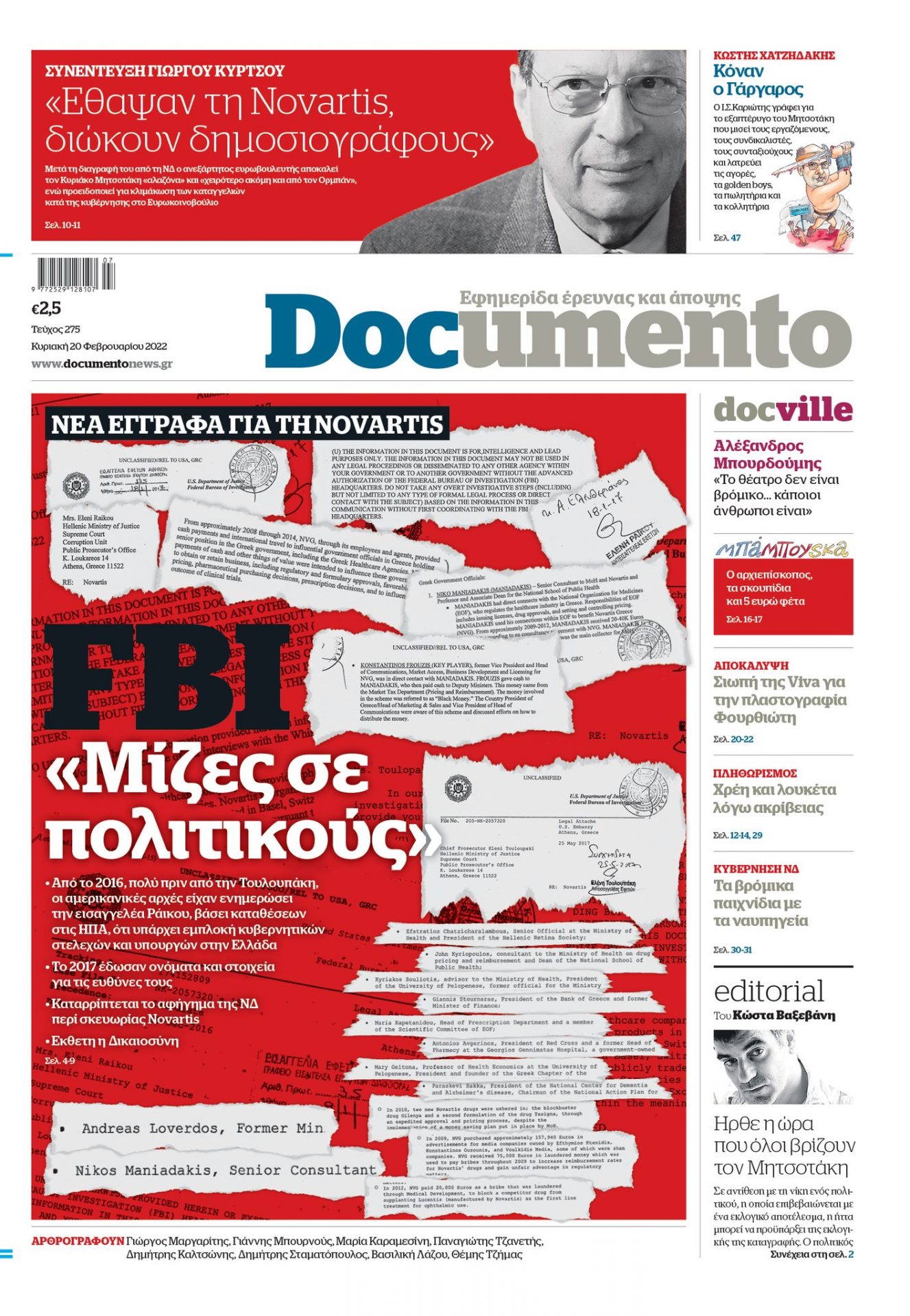 Τα αποκαλυπτικά έγγραφα του FBI για τη Novartis στο Κυριακάτικο Documento
