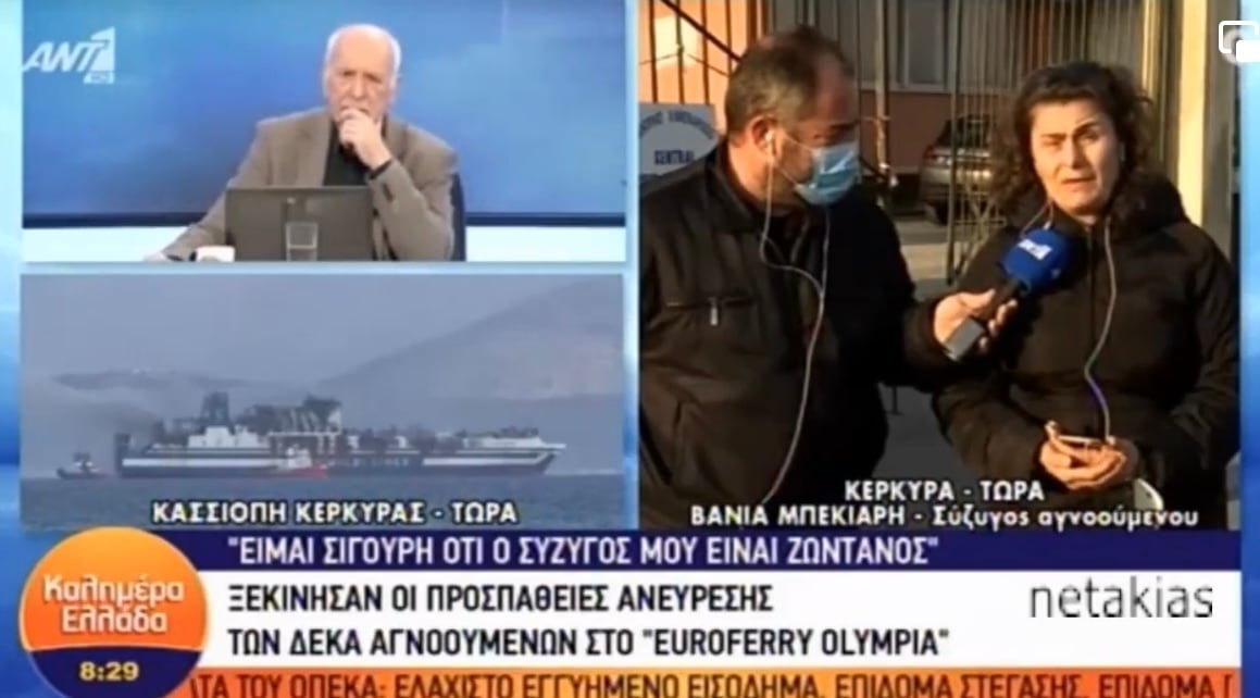 Η Βάνια Μπεκιάρη, ειναι σύζυγος ενός εκ των Ελλήνων οδηγών φορτηγού, που αγνοείται από την Παρασκευή, που ξέσπασε η φωτιά στο πλοίο Euroferry Olympia: