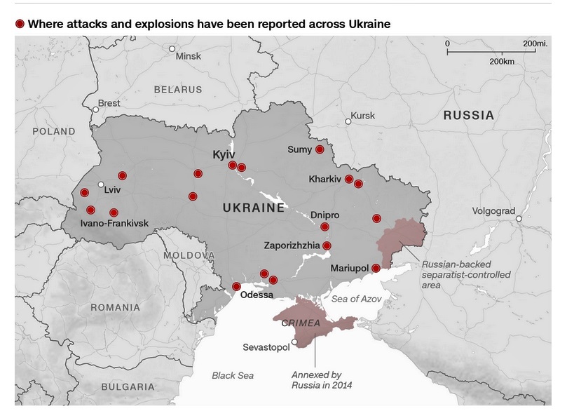 Τοποθεσίες της Ουκρανίας όπου έχουν αναφερθεί επιθέσεις και εκρήξεις, σύμφωνα με το CNN Πρωτοσελιδα – Ειδήσεις