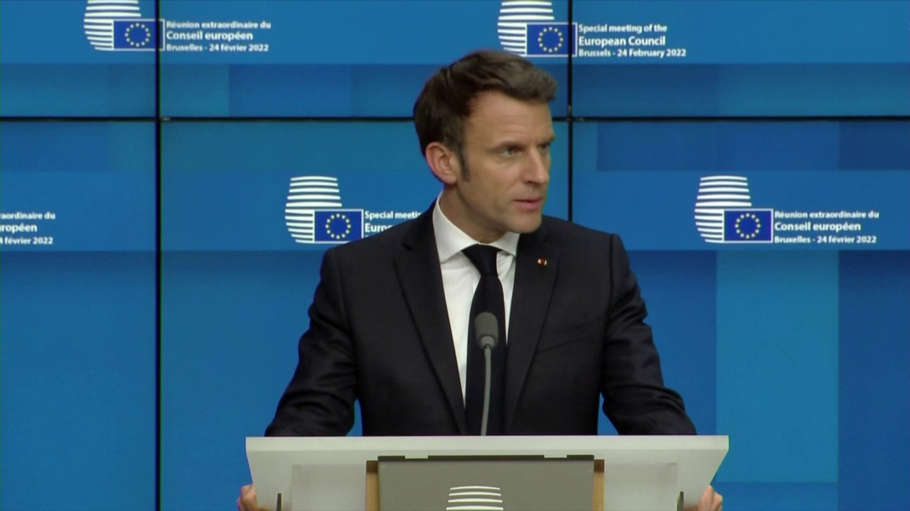 Ο Εμανουέλ Μακρόν σημείωσε ότι το πακέτο κυρώσεων που αποφασίστηκε από τους 27 της ΕΕ θα στοχεύσει και το καθεστώς της Λευκορωσίας, που χαρακτηρίζεται ως «συνένοχος» της ρωσικής εισβολής.