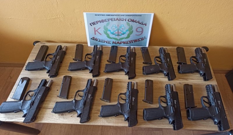 «Συναγερμός» σήμανε στις 11:00 το πρωί της Παρασκευής στον Έβρο, όταν στελέχη της Περιφερειακής Ομάδας Δίωξης Ναρκωτικών του Κεντρικού Λιμεναρχείου Αλεξανδρούπολης, σε συνεργασία με στελέχη της Υπηρεσίας Δίωξης Ναρκωτικών της Διεύθυνσης Αστυνομίας Κομοτηνής, συνέλαβαν πέντε παράτυπους μετανάστες στην κατοχή των οποίων βρέθηκαν 10 πιστόλια τουρκικής κατασκευής των 9mm.