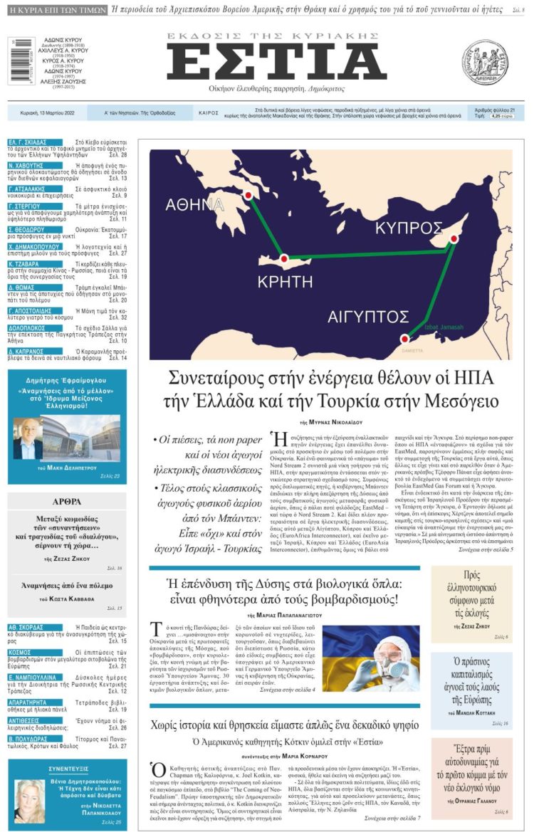Αποκαλυπτικη και αυτή την Κυριακή η εφημεριδα Εστια.