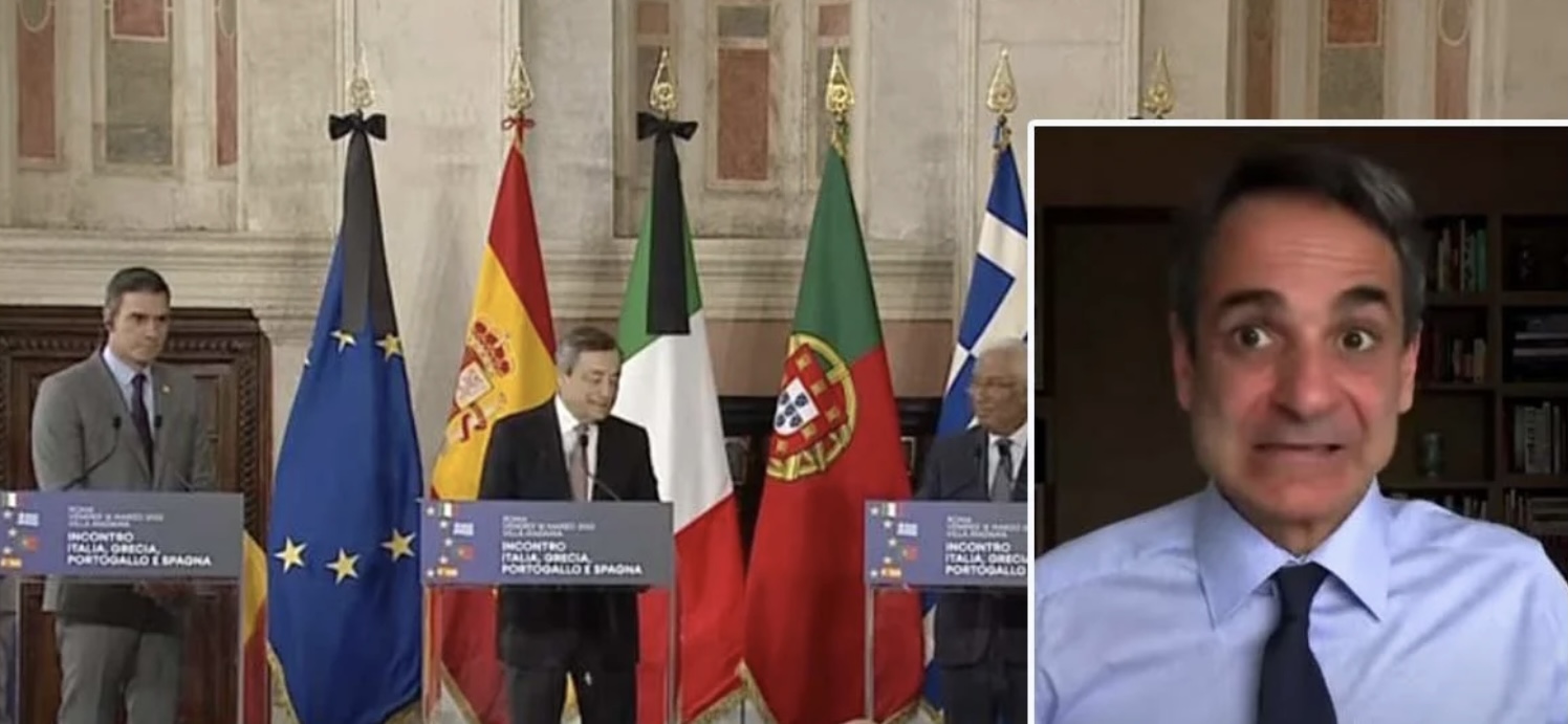 Η σύνδεση του διαδικτύου δεν ήταν επιτυχής με αποτέλεσμα οι Μάριο Ντράγκι, Πέδρο Σάντσεθ και Αντόνιο Κόστα να παρακολουθήσουν το «παγωμένο» χαμόγελο του πρωθυπουργού αλλά και περίεργες γκριμάτσες του, καθώς ο Κυριάκος Μητσοτάκης έκανε νοήματα σε κάποιον που βρισκόταν μπροστά του για… άγνωστους λόγους.