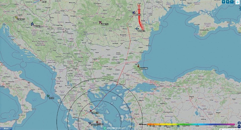 Στον παρόντα χάρτη που επίσης δημοσιεύει κατ’ αποκλειστικότητα η «κυριακάτικη δημοκρατία», αποκαλύπτεται ότι νατοϊκό AWACS απογειώνεται από την Κόνια της Τουρκίας και μεταβαίνει σε περιοχές της Ρουμανίας, για να παρακολουθεί τις πολεμικές επιχειρήσεις στη χώρα. Το ίχνος του AWACS απεικονίζεται στον χάρτη με μοβ χρώμα (ΝΑΤΟ 12)