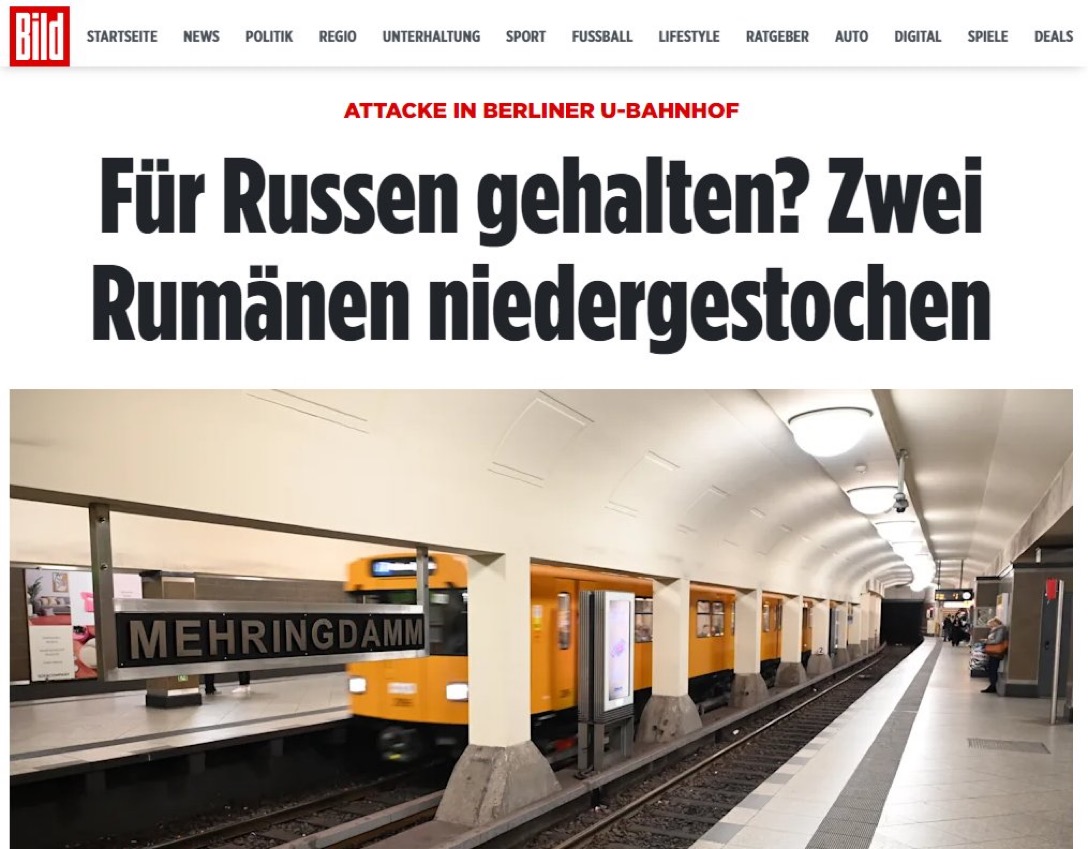 “Είστε Ρώσοι;” ρώτησε δυο νεαρούς επιβάτες του μετρό στο Βερολίνο, επειδή τους άκουγε να μιλούν μια ξένη γλώσσα. Προτού προλάβουν να απαντήσουν ότι είναι Ρουμάνοι, μαχαίρωσε τον έναν στην κοιλιά και τον δεύτερο στο χέρι φωνάζοντας “πάρτε τα σκατορώσοι”.