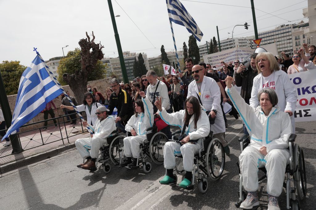 Οι υγειονομικοί που διαμαρτύρονται μεταξύ άλλων για τις αναστολές εργασίας, την ιδιωτικοποίηση του ΕΣΥ και την επίμονη άρνηση για μονιμοποίηση των συμβασιούχων, βροντοφώναξαν συνθήματα κατά της κυβέρνησης. Το παρών έδωσαν και υγειονομικοί οι οποίοι έχουν προχωρήσει σε απεργία πείνας.