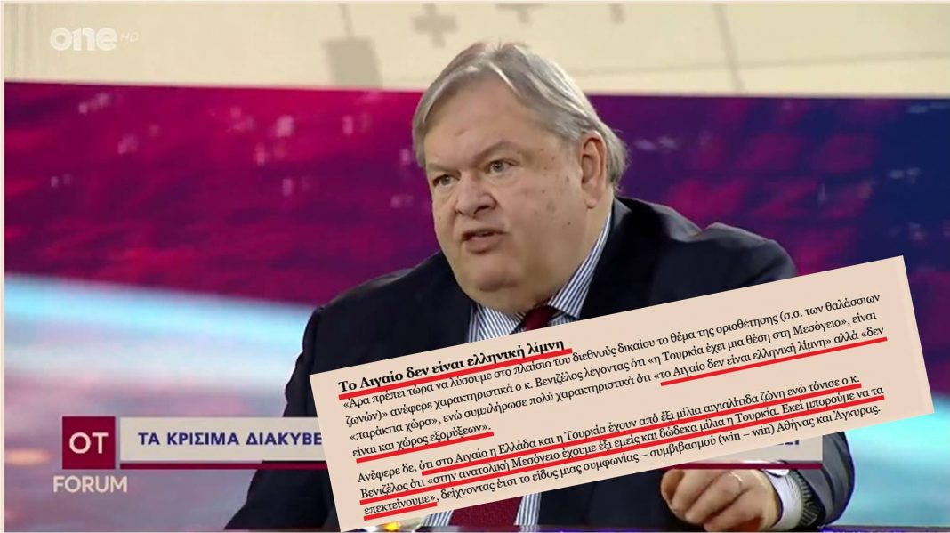 Ανέφερε δε, ότι στο Αιγαίο η Ελλάδα και η Τουρκία έχουν από έξι μίλια αιγιαλίτιδα ζώνη ενώ τόνισε ο κ. Βενιζέλος ότι «στην ανατολική Μεσόγειο έχουμε έξι εμείς και δώδεκα μίλια η Τουρκία. Εκεί μπορούμε να τα επεκτείνουμε», δείχνοντας έτσι το είδος μιας συμφωνίας – συμβιβασμού Αθήνας και Άγκυρας.
