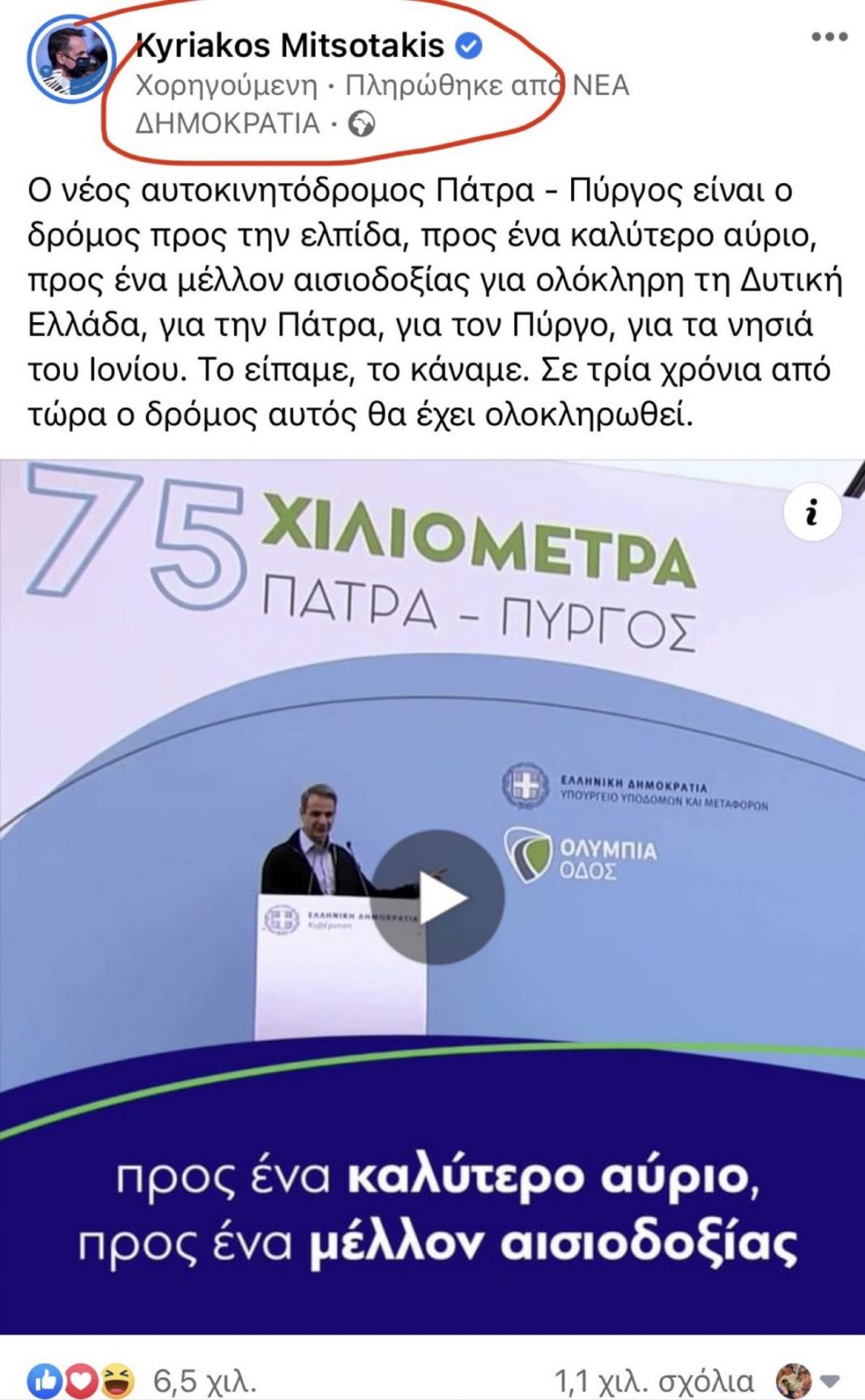 Μιλάμε για τον φονικό δρόμο Πάτρας – Πύργου, ο οποίος σήμερα θα έχει ολοκληρωθεί εάν ο ελληνικός λαός δεν είχε την φαεινή ιδέα να εκλέξει τον Μητσοτάκη πρωθυπουργό. Όπως ολοκληρώθηκαν όλοι υπόλοιποι δρόμοι που είχαν καταντήσει εφιάλτης και κρεματόριο για τον ελληνικό λαό, μέσα στα τέσσερα χρόνια. Ακόμα και ο εφιαλτικός δρόμος Ρίο – Αντίρριο, ο οποίος είχε ξεκινήσει επί Κώστα Καραμανλή, διακοπή επί Γιώργου Παπανδρέου και Αντώνη Σαμαρά και συνεχίστηκε επί Αλέξη Τσίπρα.