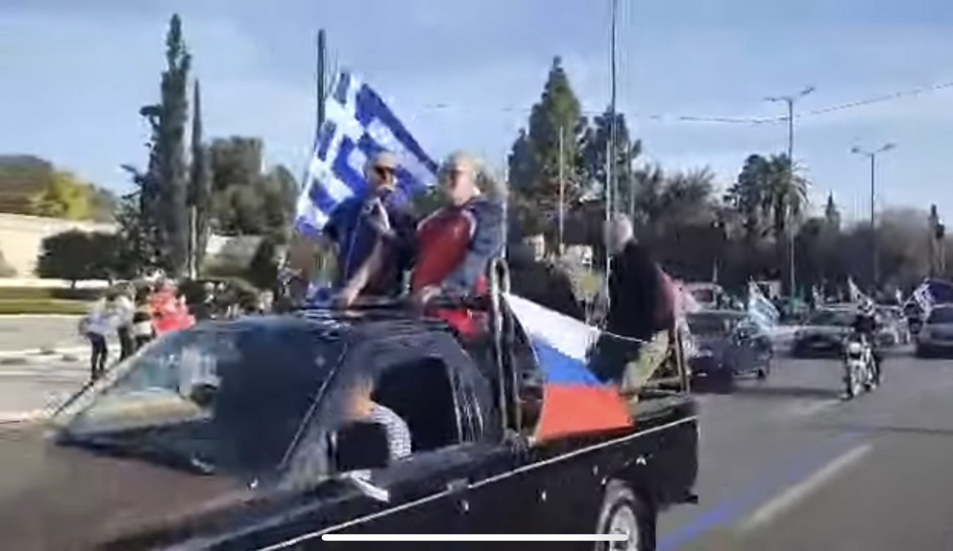 Αυτοκινητοπομπή στο Σύνταγμα πριν απο λίγο με Ελληνικές και Ρωσικές σημαίες. Προφανώς το κάλεσμα είχε γίνει στα μέσα κοινωνικής δικτύωσης.