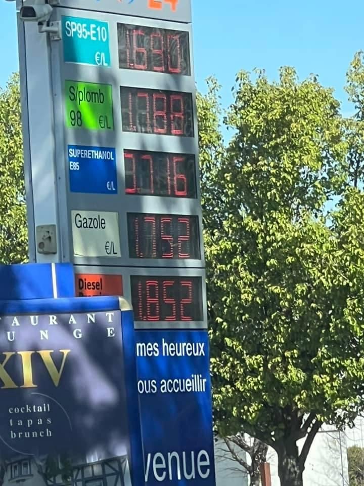 Το μόνο θετικό από την πρωινή έξοδο ήταν η επίσκεψη στο πρατήριο υγρών καυσίμων. Μετά από ημέρες ανόδου στις τιμές των καυσίμων που άγγιξαν ακόμα και τα 2,40 ευρώ το λίτρο, οι τιμές έπεσαν κάτω από τα 2 ευρώ. Οποτε οι γάλλοι έσπευσαν μαζικά να βάλουν βενζίνη…