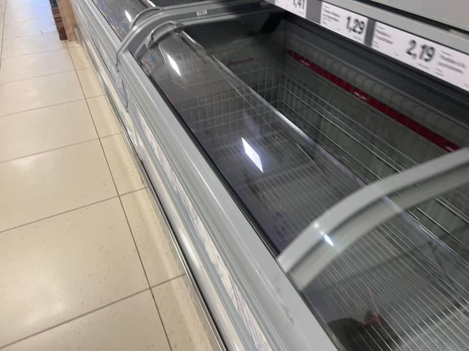 Χαμηλωμένα φώτα στους διαδρόμους, σβηστά τα φώτα στα ψυγεία που τα περισσότερα ήταν άδεια… Άνθρωποι φεύγοντας από τα ταμεία κοίταζαν τις αποδείξεις τους με απορία…