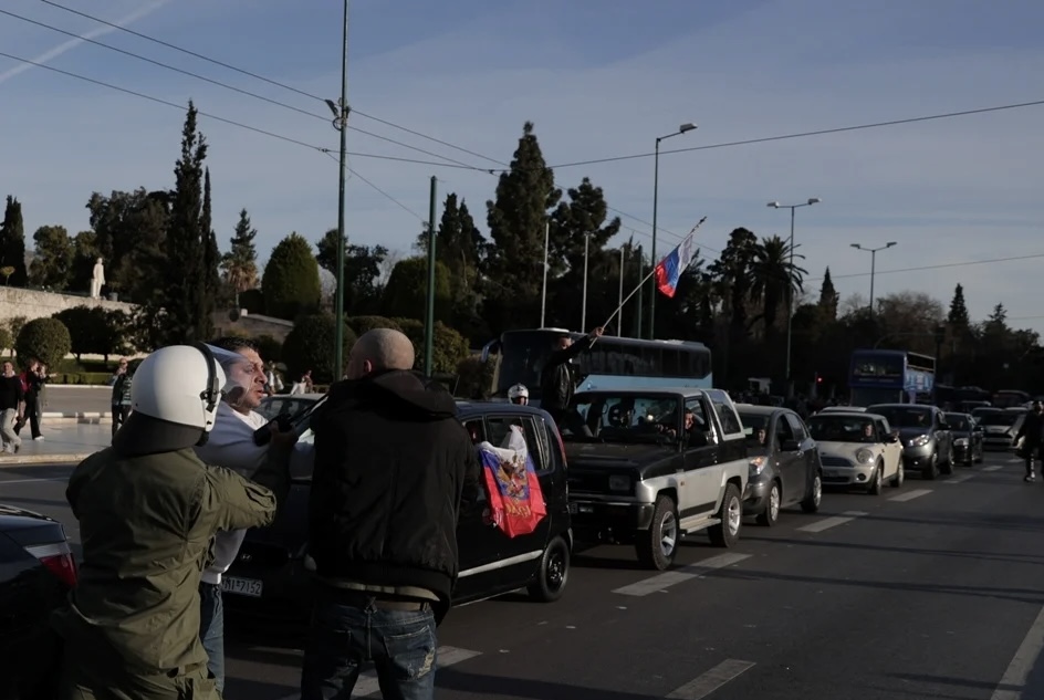 Διχασμένη η Αθήνα καθως την ωρα που πολίτες έδειχναν την υποστήριξή τους προς την Ουκρανία και τον άμαχο πληθυσμό της με συγκέντρωση στην πλατεία Συντάγματος, στη λεωφόρο Συγγρού συγκεντρώθηκαν άνθρωποι, οι οποίοι πραγματοποίησαν αυτοκινητοπομπή, κρατώντας… ρωσικές και ελληνικές σημαίες.