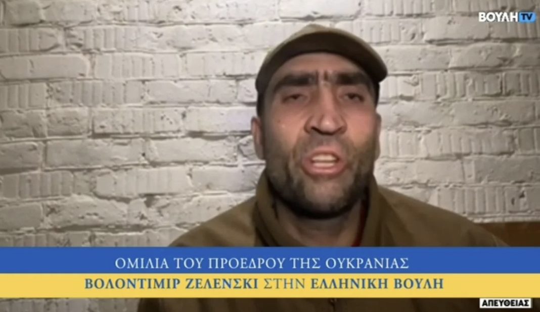 Ο Ζελένσκι κατά τη διάρκεια της ομιλίας του παρουσίασε και ένα βίντεο με ένα άτομο το οποίο περιέγραψε ως «Έλληνα» και το οποίο «υπερασπίζεται» τη Μαριούπολη όπως είπε. Μόνο που ο άνδρας δήλωσε πως ανήκει στο ναζιστικό τάγμα Αζόφ!