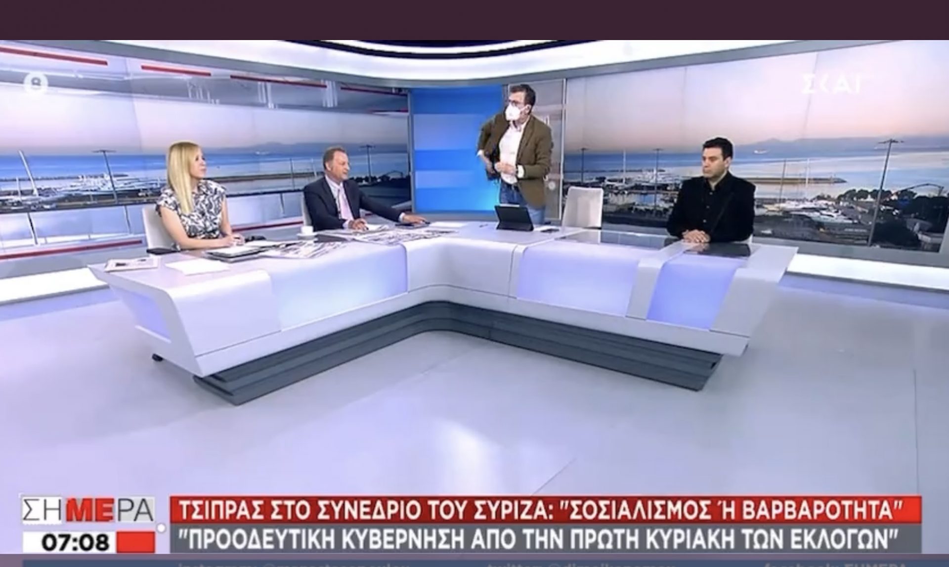 Αδιανόητες σκηνες διαδραματίστηκαν στην πρωινή εκπομπή του Σκάι εμώ ακούστηκαν και αδιανόητες εκφράσεις απο έγκυρους δημοσιογράφους. Μέχρι πρότινος σίγουρα όλοι μας πιστεύαμε πως είναι πιθανότερο να αποχωρήσει ο Κυριάκος Μητσοτάκης από το Μαξίμου, πάρα ο Άρης Πορτοσάλτε από το στούντιο του σταθμού.