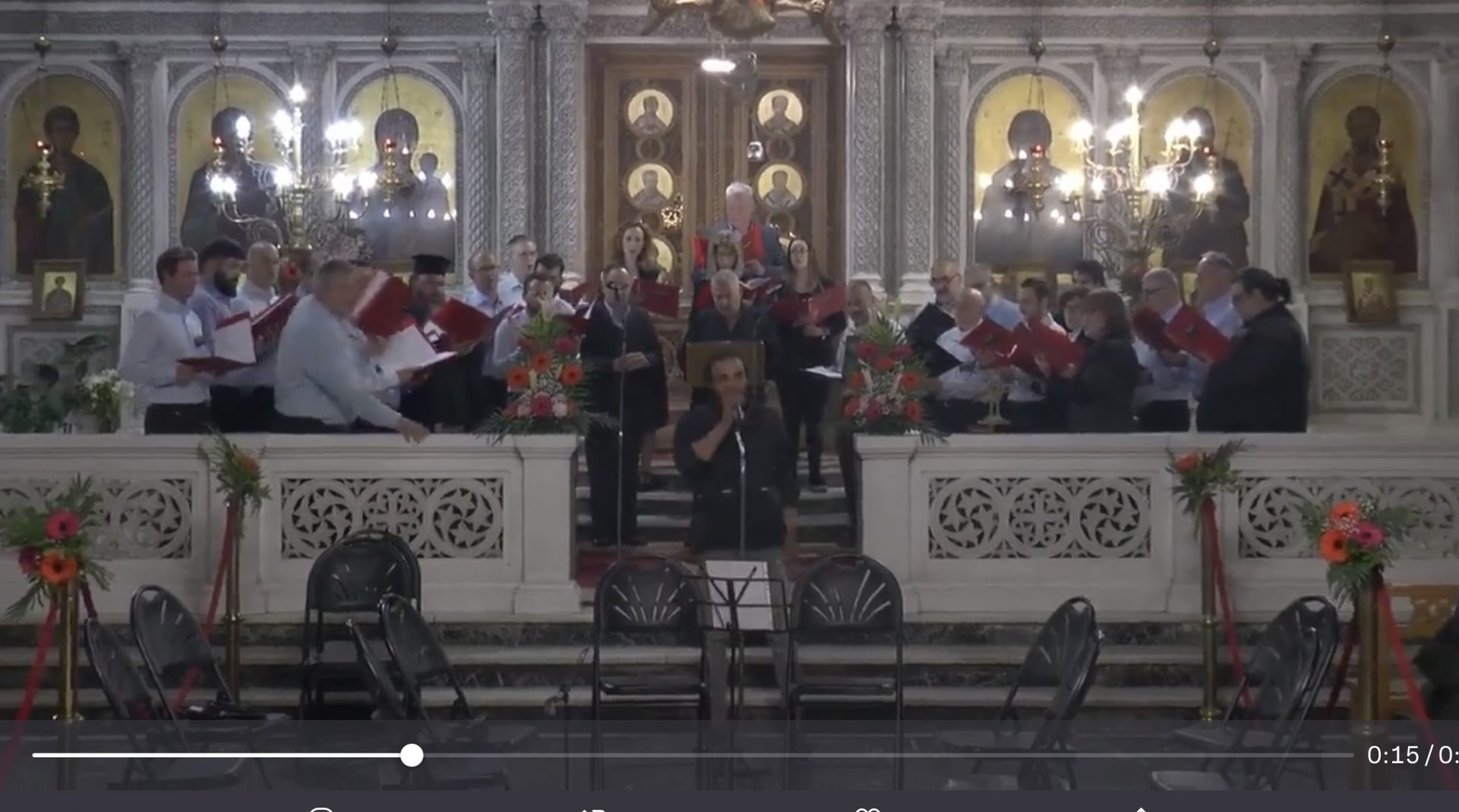 Εκκλησιαστικοί ύμνοι αποδόθηκαν από Βυζαντινό Χορό και Ορχήστρα με την συμμετοχή της υψιφώνου κ.Ροδάνθης Κασκαφέτου και μονωδούς τους Πρωτοψάλτες κ.Θεόδωρο Καλλίμαχο και τον κ.Βασιλ.Γεωργούδη και σε μια καινοτόμο Μουσική Παρέμβαση.