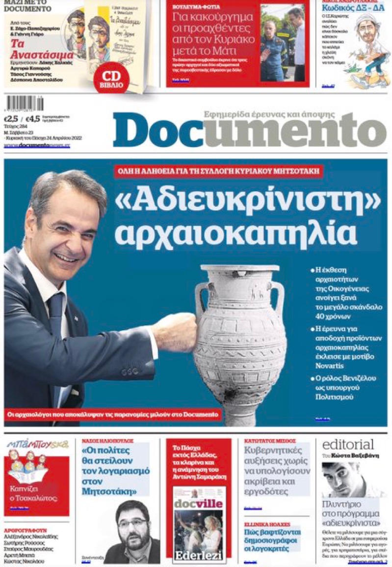 Αποκαλυπτική και αυτή την εβδομάδα, η εφημεριδα Documento του Κωστα Βαξεβάνη που κυκλοφορεί, αύριο, Μεγαλο Σάββατο.