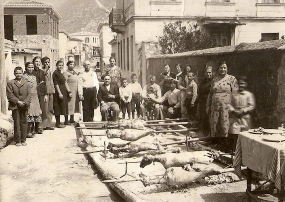 Στη Λιβαδειά οι κάτοικοι στήνουν σε σειρά υπαίθριες σούβλες και συγκεντρώνονται γύρω τους πίνοντας και τρώγοντας για ώρες.