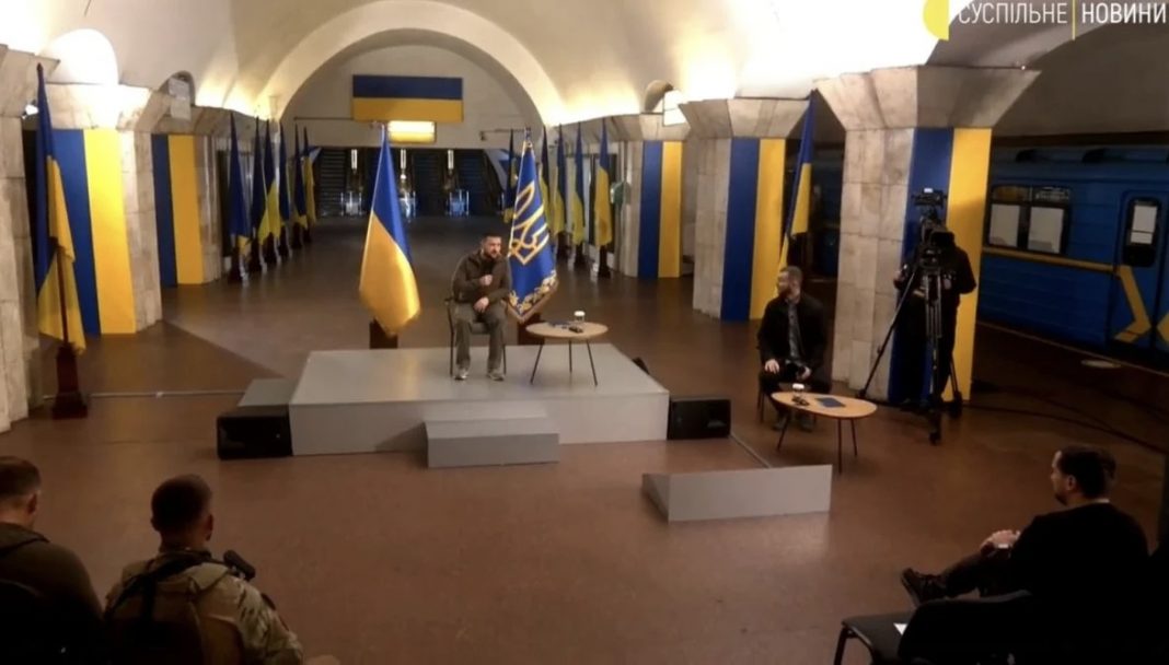 Ο πρόεδρος της Ουκρανίας Βολοντιμίρ Ζελένσκι παραχώρησε συνέντευξη Τύπου σε έναν σταθμό του ουκρανικού μετρό και απάντησε στις ερωτήσεις των δημοσιογράφων σχετικά με την κατάσταση στη χώρα του.