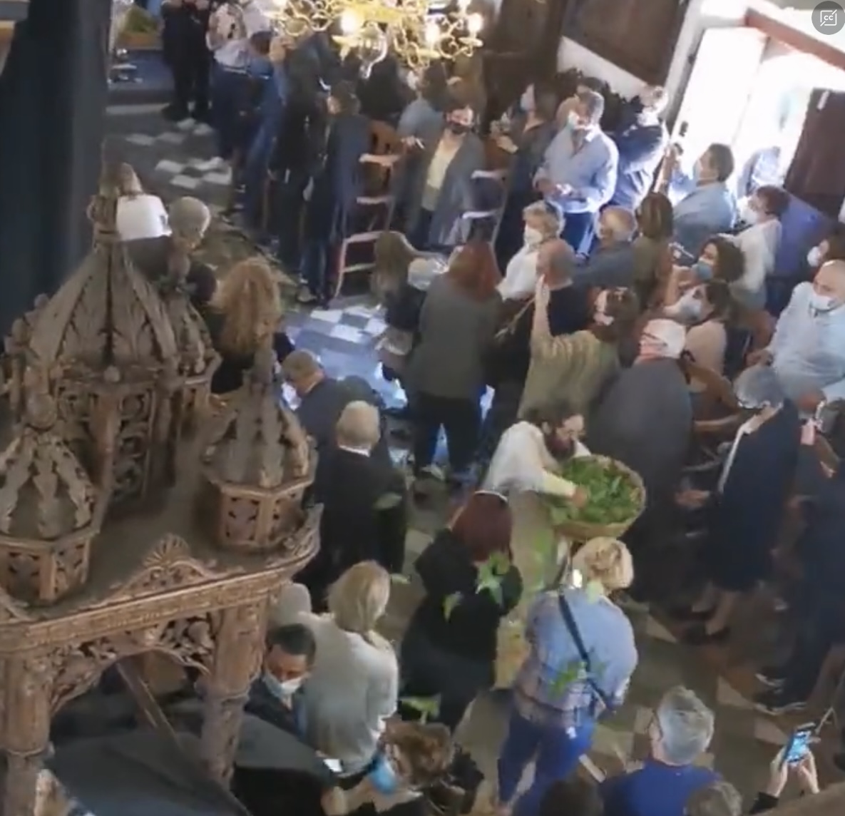 Στον Ιερό Ναό Αγίου Γεωργίου, στο Παραλίμνι, ο Πάτερ Ηρακλείδιος Ξιούρος πέταξε δάφνες προς τους πιστούς, κάνοντας Ανάσταση σε χρόνο – ρεκόρ.