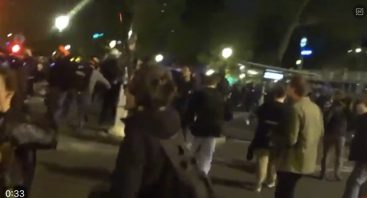 Πρωτοφανή επεισόδια μεσα στην νύχτα  σε συγκέντρωση διαμαρτυρίας στο Παρίσι για τη νίκη του Εμανουέλ Μακρόν στις προεδρικές εκλογές της 24ης Απριλίου.