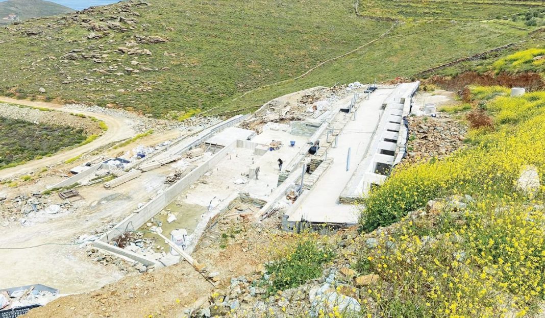 Ο λόγος για τις δύο πισίνες που δεσπόζουν σε καθεμία από τις δύο υπόσκαφες βίλες του, κόβοντας την ανάσα, καθώς είναι -κυριολεκτικά- ολυμπιακών διαστάσεων. Φαντάζει μάλλον υπερβολικό σε βίλες που αντικρίζουν τη θαλασσινή ομορφιά του Αιγαίου μας να τοποθετούνται ολυμπιακών διαστάσεων πισίνες, όμως είναι γεγονός. Και, προφανώς, η κατασκευή τέτοιων τεχνιτών, υδάτινων μεγαθηρίων σε νησιωτικό λόφο έχουν διαστημικό κόστος.