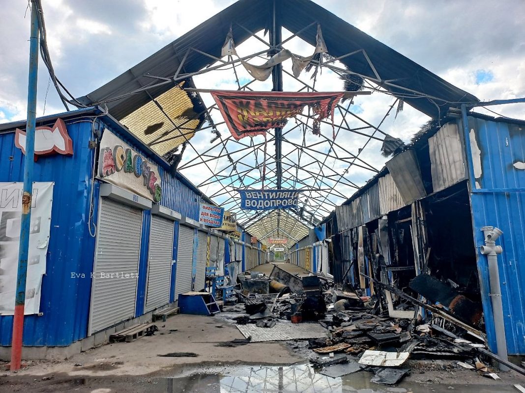 Πριν από μερικές ώρες, πήρα ένα ταξί με έναν άλλο δημοσιογράφο (που μιλάει ρωσικά) στην αγορά Sokol, στην περιοχή Kirovsky, δυτικά του Ντόνετσκ, που βομβαρδίστηκε γύρω στο μεσημέρι σήμερα από τις ουκρανικές δυνάμεις πιο δυτικά.