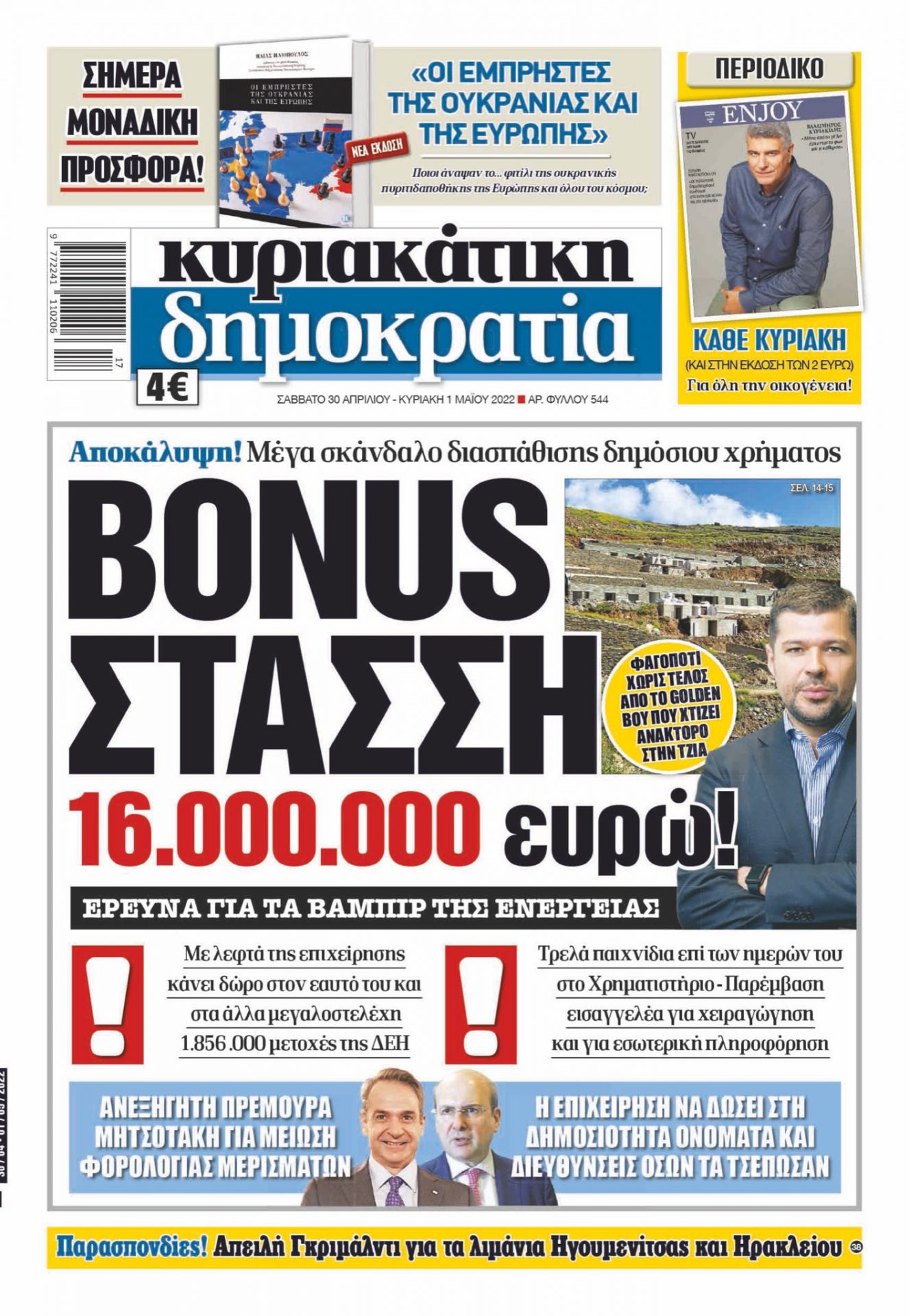 Αποκαλυπτικη η Κυριακτικη Δημοκρατια και αυτή την εβδομάδα που κυκλοφορεί έκτακτως αύριο, Σάββατο.