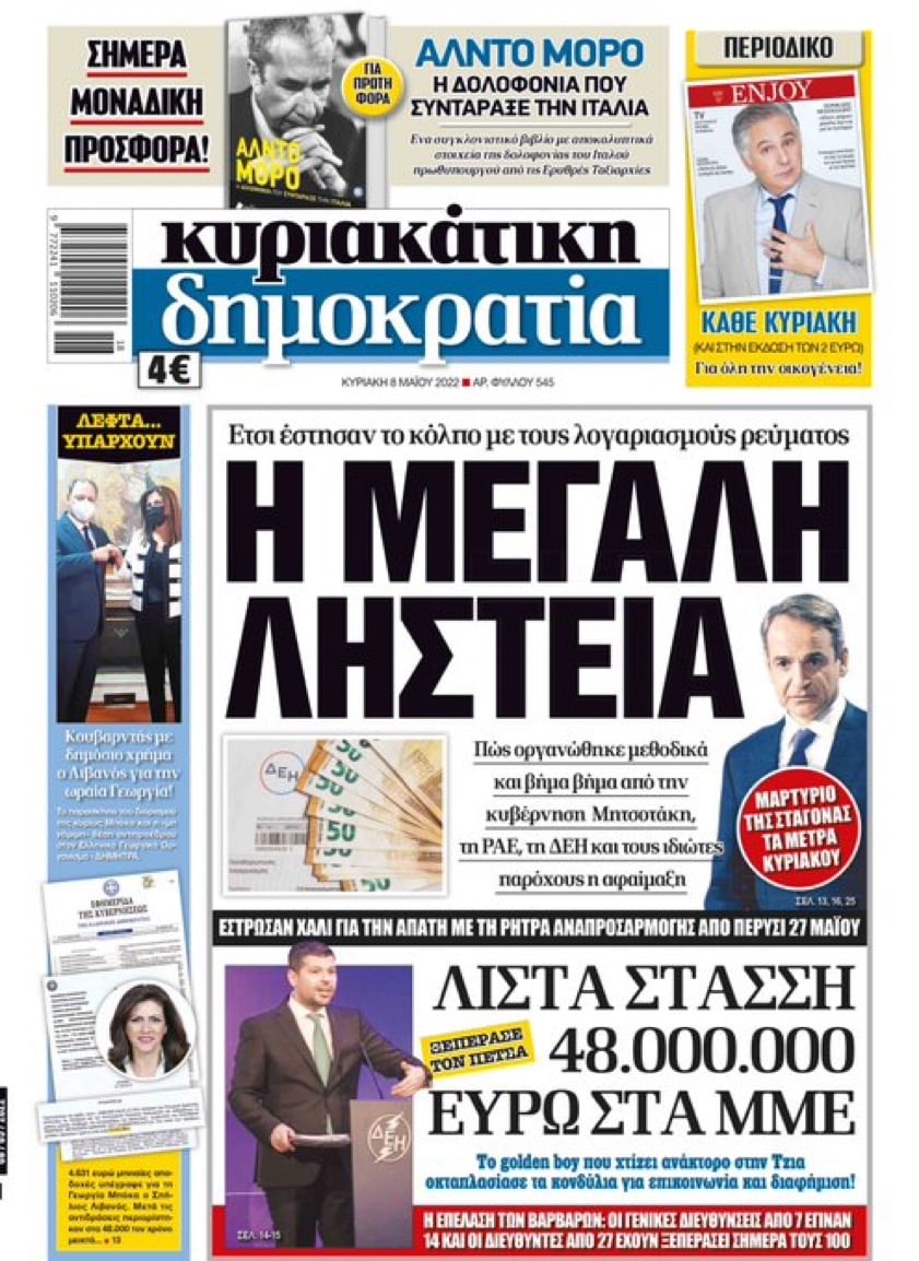 MEDIAΕτσι έστησαν το κόλπο με τους λογαριασμούς του ρεύματος – Αποκαλύψεις απο την Κυριακάτικη Δημοκρατια7/05/2022 - 17:31μμΔΙΑΒΑΣΤΕ ΕΠΙΣΗΣ Τα πρωτοσέλιδα των εφημερίδων σήμερα ΔευτεραΤα πρωτοσέλιδα των εφημερίδων σήμερα ΚυριακήΣτην Εστία της Κυριακής: Η συνταγματική αναθεώρηση επισπεύδει τίς εκλογέςΣτην Κυριακάτικη Δημοκρατία: Μοιράζουν χρήμα όσο μας αποκομίζουνΣτο Κυριακάτικο Documento του Κώστα Βαξεβάνη: Πάρτυ εκατομμυρίων στο Μαξίμου και στα υπουργεία με τους συμβούλουςΤην Κυριακή 30/11 με την Εστία της Κυριακής: Το ημερολόγιο του Στρατηγού ΣκόμπιΤην Κυριακή 30/11 με την κυριακάτικη «δημοκρατία»: Σύνταγμα Χωροφυλακής ΑθηνώνΤο πρωτοσέλιδο της εφημερίδας Θεσσαλονίκη που κυκλοφορεί σήμερα Σάββατο Αποκαλυπτικό ρεπορτάζ απο την Κυριακάτικη Δημοκρατια για το μεγαλο κόλπο με τους λογαριασμούς στο ρευμα. Πρωτοσελιδα – ΕιδήσειςΚΥΡΙΑΚΑΤΙΚΗ ΔΗΜΟΚΡΑΤΙΑ ΔΗΜΟΦΙΛΗ Βόμβα από τον Πάνο Καμμενο για μίζες από Ουκρανία Ελλάδα!Ανάρτηση βόμβα του Πάνου Καμμενου: Ακριβώς έτσι οι Γερμανοί σχεδιάζουν να μπλέξουν την Ευρώπη στον 3ο παγκόσμιο πόλεμο για να σωθούν…..Ο Νίκος Μουρατίδης πάει μονότερμα τον Μητσοτάκη: Είναι η ντροπή της ΔημοκρατίαςΧαμός στην εκπομπή της Ναταλίας Γερμανού με όσα είπε ο Νίκος Καρανίκας για το βιβλίο του Αλέξη ΤσίπραΣάλος με την διαφήμιση των Jumbo που κοροϊδεύει την Ιθάκη του Αλέξη ΤσίπραΨηνεται μεταγραφη βομβα εν ενεργεια “κεντροαριστερου” βουλευτη στη ΝΔΧαμος στο The Voice με παιχτρια που απαντησε χυδαια στον Πανο Μουζουρακη – Η απροβλεπτη αντιδραση του Γιωργου ΜαζωνακηΑνατροπή στη δίκη της Κιβωτού
