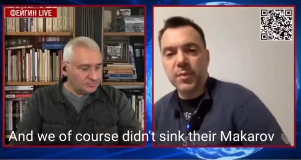 Ο Arestovich είπε ότι οι Ένοπλες Δυνάμεις της Ουκρανίας βύθισαν το “Sarna” (ένα σκάφος για τη μεταφορά εξοπλισμού) και οι πληροφορίες σχετικά με την βύθιση του πλοίου “Admiral Makarov” δεν είναι αληθινές.