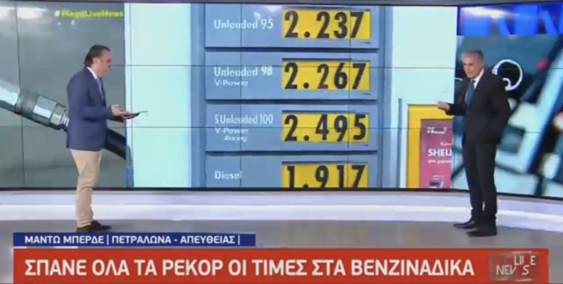 Σύμφωνα με το ρεπορτάζ της εκπομπης συνεχίζεται το «ράλι» τιμών στα καύσιμα με την τιμή της βενζίνης στο κέντρο της Αθήνας να ειναι πάνω από 2,30.