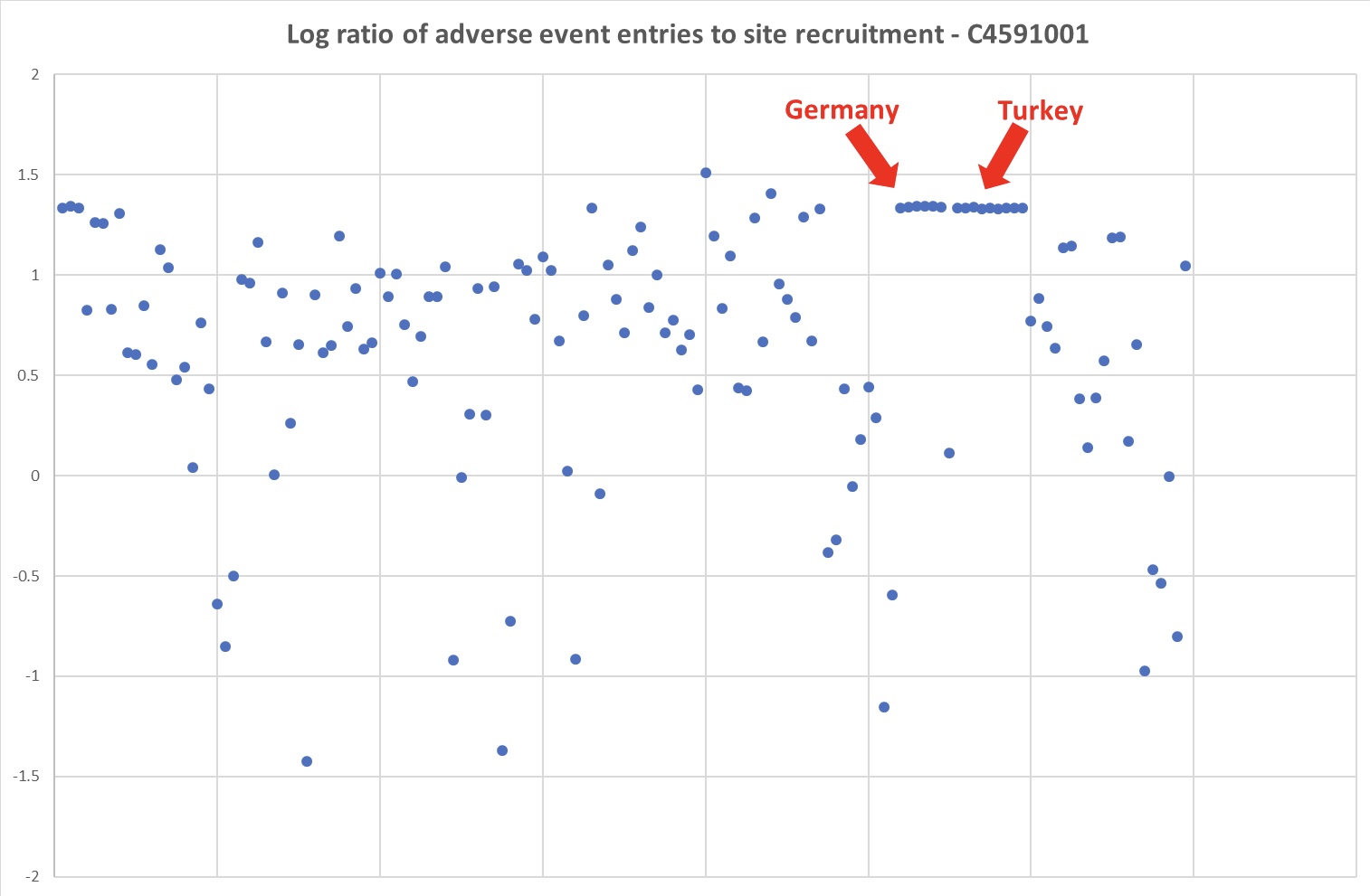 Just a sneaky coincidence that all the German and Turkish sites had exactly the same number of adverse events per person.