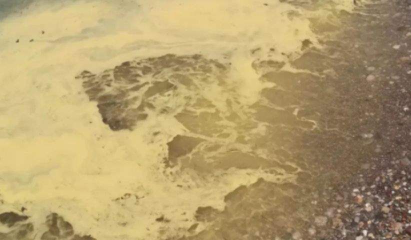 Κίτρινο χρώμα πήρε η θάλασσα της Πάτρας, όπως φάνηκε σε βίντεο που ανέβασε πολίτης στο Instagram.