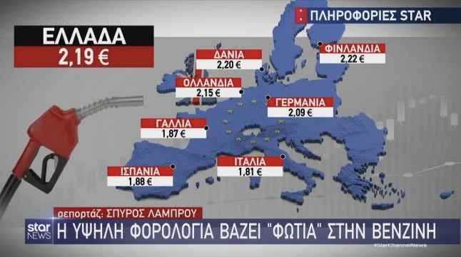 Γεγονός που φέρνει την Ελλάδα σήμερα στην τρίτη θέση της Ευρώπης στη λίστα με τις χώρες που πουλούν ακριβότερα τη βενζίνη. Η πρωτιά ανήκει στη Φινλανδία με 2,22 ευρώ/λίτρο κατά μέσο όρο, ενώ στη δεύτερη θέση είναι η Δανία, με τιμές στα 2,20 ευρώ/ λίτρο μ.ό.