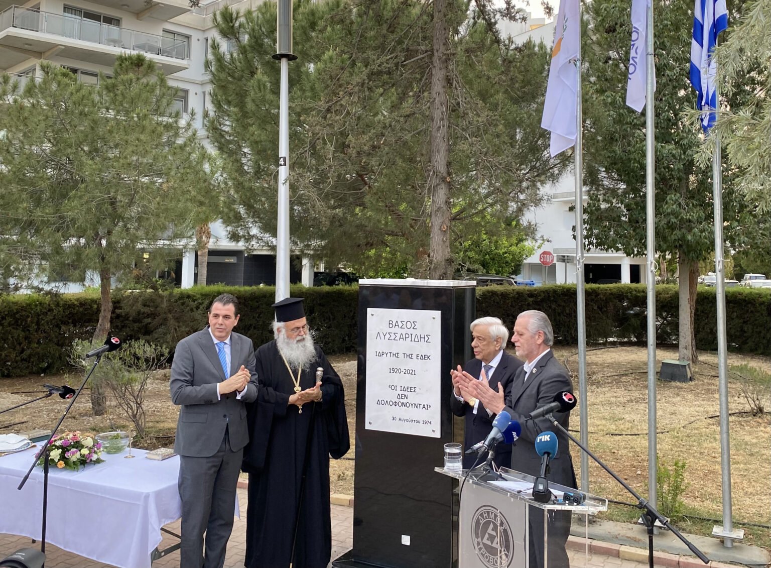 «Με αισθήματα εξαιρετικής τιμής και βαθιάς συγκίνησης αποτίω μαζί σας εδώ, στην Μαρτυρική Κύπρο -στο αναπόσπαστο απαστράπτον κομμάτι του Ελληνισμού ανά τους αιώνες- τον οφειλόμενο φόρο τιμής στην Μνήμη του Βάσου Λυσσαρίδη. Πριν από ένα, περίπου, χρόνο, την 26 Απριλίου 2021 ο Βάσος Λυσσαρίδης άφησε τα εγκόσμια για να πάρει τον δρόμο της αιωνιότητας που δικαιωματικώς του ανήκει. Όμως όλοι εμείς τον νοιώθουμε πάντα παρόντα, να μας στέλνει με στεντόρεια φωνή το μήνυμα του Τεύκρου, από την «Ελένη» του Ευριπίδη -αλλά και την «Ελένη» του Γιώργου Σεφέρη- που συμπυκνώνει ο στίχος: «…Ἐς γῆν ἐναλίανΚύπρον, οὗ μ‘ ἐθέσπισεν οἰκεῖν Ἀπόλλων, ὄνομανησιωτικόν Σαλαμῖνα θέμενον τῆς ἐκεῖ χάριν πάτρας». Γιατί ο Βάσος Λυσσαρίδης απέδειξε, έργω και λόγω, σε όλη την πολυκύμαντη ζωή του, ότι υπήρξε γνήσιος απόγονος του Τεύκρου: Ένας αυθεντικός Έλληνας που τάχθηκε να φυλάσσει, δίχως να υπολογίζει θυσίες και κόστος, τις Θερμοπύλες του Ελληνισμού στην Κύπρο όπου, και πάλι κατά τον Γιώργο Σεφέρη, «το θαύμα λειτουργεί ακόμη».