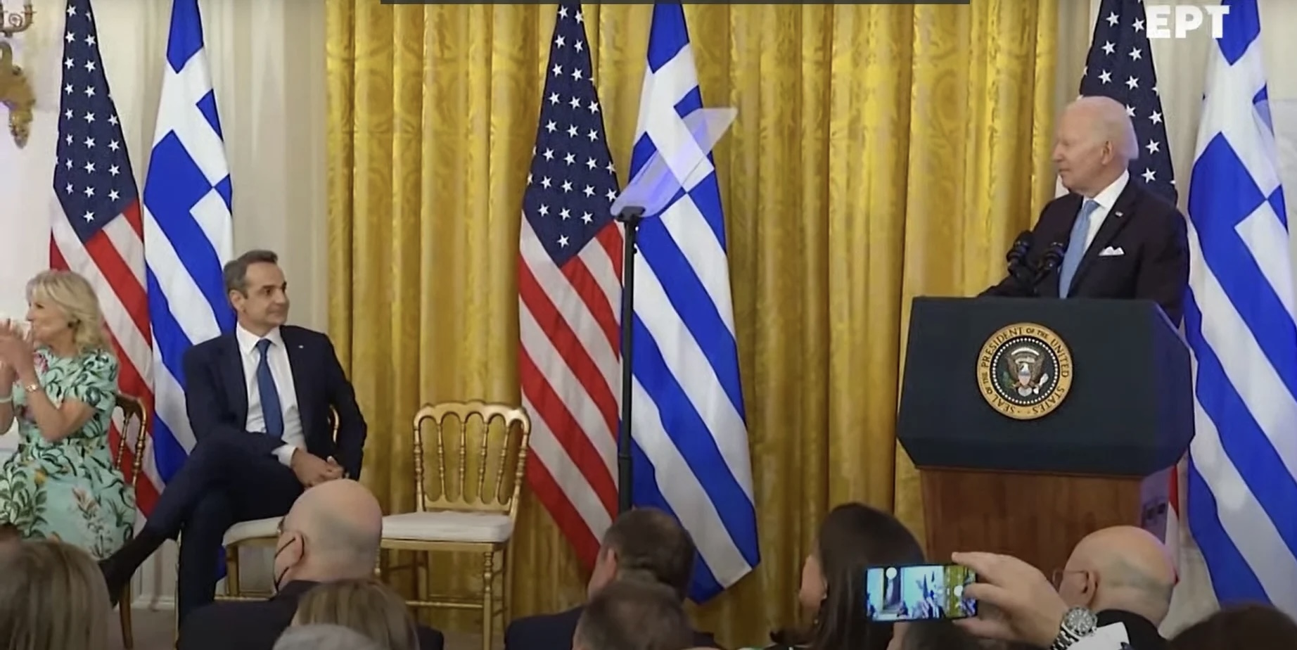 Πραγματοποιήθηκε η Συνάντηση του Προέδρου των ΗΠΑ μετά του προσκεκλημένου του στον Λευκό Οίκο Έλληνα Πρωθυπουργού. Όλη η Ελλάδα είδε έναν Μητσοτάκη να μή μπορεί να ξεφύγει από τον κακό του εαυτό. Όλοι είδαν την επιδεικτική γνώριμη σταυροποδιά όπως επίσης τα αχρείαστα και θρασύτατα «χαϊδευτικά» σπρωξίματα (τύπου «άντε καλέ») όταν οι δύο ηγέτες διασταυρώθηκαν στην διαδρομή προς / από του βήματος ανταλλαγής