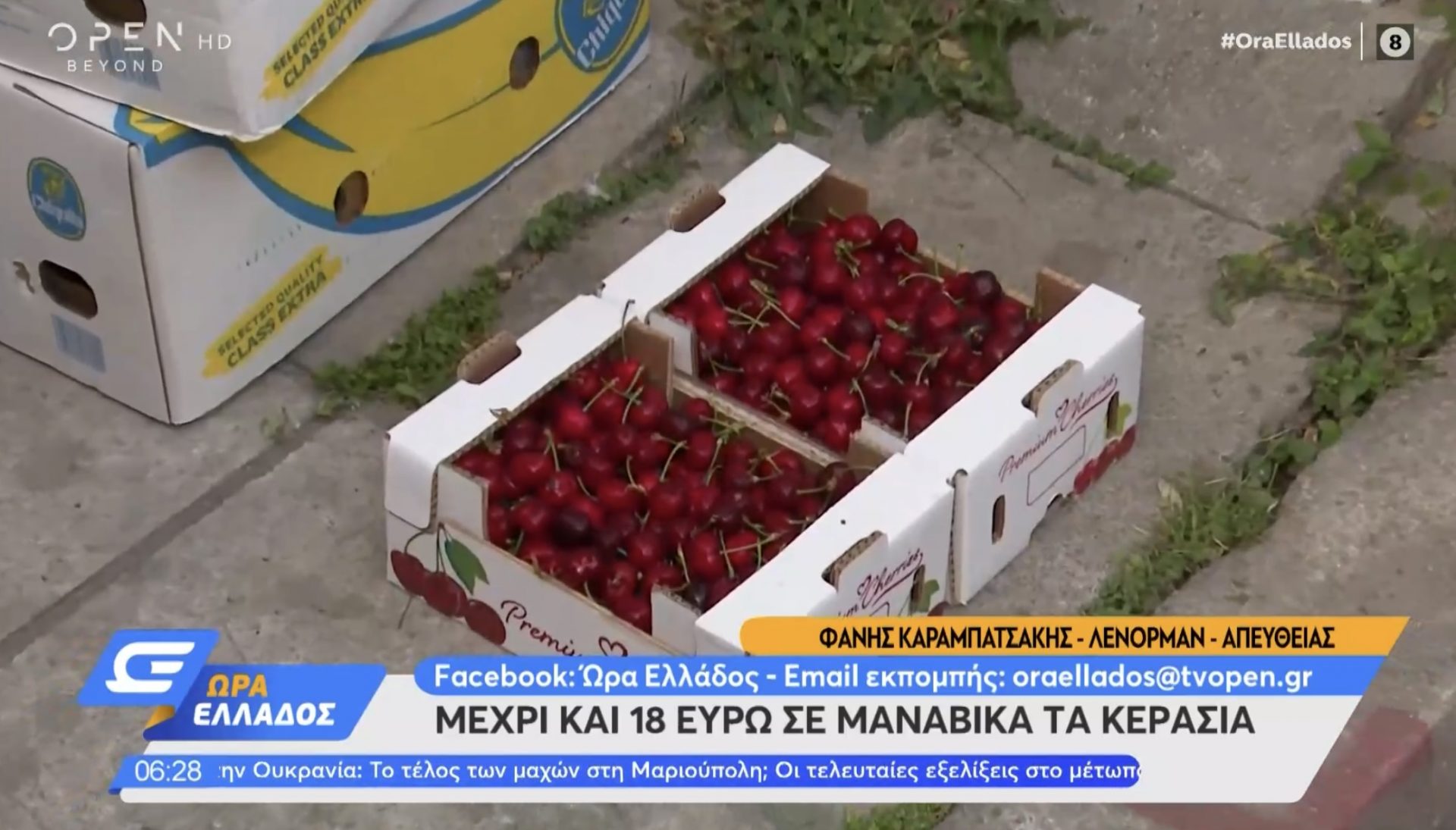 Μετά τις τιμές των καυσίμων, σειρά στο ξέφρενο ράλι ανατιμήσεων έχουν τα κεράσια! Η τιμή του καλοκαιρινού φρούτου σε αρκετές περιπτώσεις στα μανάβικα αγγίζει ακόμα και τα 18 ευρώ το κιλό. Σύμφωνα με πληροφορίες, στις λαϊκές αγορές κυμαίνονται από 5 έως 6 ευρώ. Μάλιστα, σε μεγάλη λαϊκή αγορά της ανατολικής Θεσσαλονίκης μόλις 4-5 πάγκοι είχαν πρώιμα κεράσια, μία συνολική ποσότητα 100 κιλών και τα περισσότερα ήταν απούλητα. Πρωτοσελιδα – Ειδήσεις
