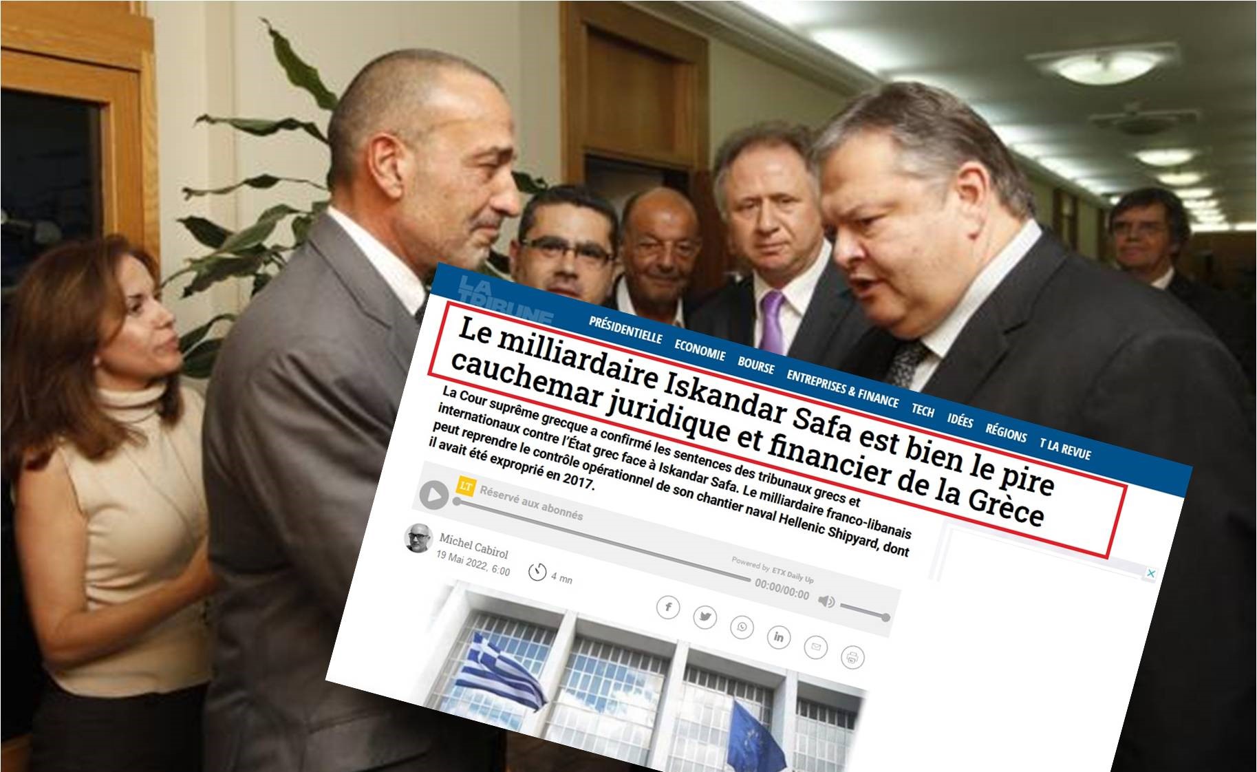 Το ελληνικό Ανώτατο Δικαστήριο επικύρωσε τις ποινές ελληνικών και διεθνών δικαστηρίων κατά του Ελληνικού Δημοσίου κατά του Ισκαντάρ Σάφα. Ο Γαλλολιβανέζος δισεκατομμυριούχος μπορεί να ανακτήσει τον επιχειρησιακό έλεγχο του Ελληνικού Ναυπηγείου του, από το οποίο απαλλοτριώθηκε το 2017.