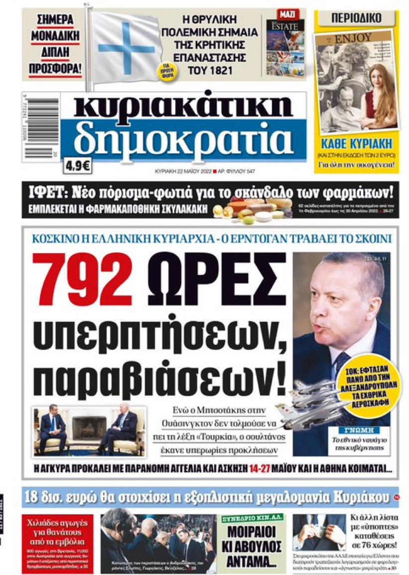 MEDIA792 ώρες παραβιάσεων και υπερπτήσεων: Αποκαλυπτικό ρεπορτάζ απο την Κυριακάτικη Δημοκρατία21/05/2022 - 16:57μμΔΙΑΒΑΣΤΕ ΕΠΙΣΗΣ Τα πρωτοσέλιδα των εφημερίδων σήμερα ΚυριακήΣτην Εστία της Κυριακής: Η συνταγματική αναθεώρηση επισπεύδει τίς εκλογέςΣτην Κυριακάτικη Δημοκρατία: Μοιράζουν χρήμα όσο μας αποκομίζουνΣτο Κυριακάτικο Documento του Κώστα Βαξεβάνη: Πάρτυ εκατομμυρίων στο Μαξίμου και στα υπουργεία με τους συμβούλουςΤην Κυριακή 30/11 με την Εστία της Κυριακής: Το ημερολόγιο του Στρατηγού ΣκόμπιΤην Κυριακή 30/11 με την κυριακάτικη «δημοκρατία»: Σύνταγμα Χωροφυλακής ΑθηνώνΤο πρωτοσέλιδο της εφημερίδας Θεσσαλονίκη που κυκλοφορεί σήμερα ΣάββατοΜε σημαντικές προσφορές κυκλοφορεί η εφημερίδα Θεσσαλονίκη σήμερα Σάββατο Αποκαλυπτικη και αυτή την Κυριακή η εφημεριδα Δημοκρατια. Πρωτοσελιδα – ΕιδήσειςΚΥΡΙΑΚΑΤΙΚΗ ΔΗΜΟΚΡΑΤΙΑ ΔΗΜΟΦΙΛΗ Ανάρτηση βόμβα του Πάνου Καμμενου: Ακριβώς έτσι οι Γερμανοί σχεδιάζουν να μπλέξουν την Ευρώπη στον 3ο παγκόσμιο πόλεμο για να σωθούν…..Ανατροπή στη δίκη της ΚιβωτούΣάλος με την διαφήμιση των Jumbo που κοροϊδεύει την Ιθάκη του Αλέξη ΤσίπραΆρθρο – καταπέλτης της ισραηλινής εφημερίδας Jerusalem Post με αφορμή τις ανακοινώσεις της Άγκυρας για τον «Ατσάλινο Θόλο»Βόμβα από τον Πάνο Καμμενο για μίζες από Ουκρανία Ελλάδα!Χαμός στην εκπομπή της Ναταλίας Γερμανού με όσα είπε ο Νίκος Καρανίκας για το βιβλίο του Αλέξη ΤσίπραΤο τελευταίο αντίο στον 19χρονο Ραφαηλ: Το φέρετρο έφτασε στην εκκλησία τυλιγμένο στη γαλανόλευκη στους ώμους στρατιωτικών που δεν μπορούσαν να συγκρατήσουν τα δάκρυά...Νίκος Μωραϊτης: Σήμερα ο Κασσελάκης άνοιξε επισήμως την πόρτα της συγκυβέρνησης με ΝΔ