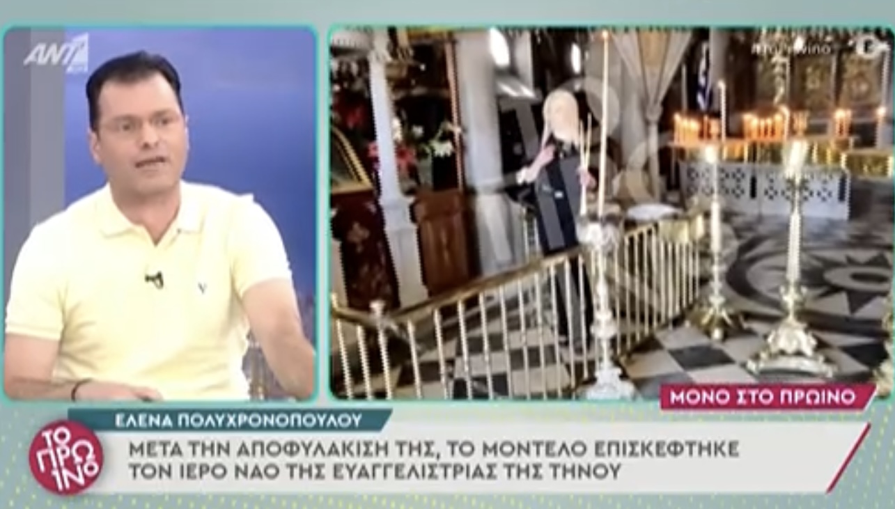 Μετα την αποφυλάκισή της, όπως αποκάλυψε το Πρωινό του ANT1, η Έλενα Πολυχρονοπούλου ταξίδεψε μέχρι την Τήνο για να εκπληρώσει το τάμα που είχε κάνει όσο βρισκόταν υπό κράτηση. Η πρώην παίκτρια του Power of Love επισκέφτηκε τον ιερό ναό της Ευαγγελιστρίας της Τήνου γονυπετής, όπως συνηθίζουν πολλοί πιστοί και άναψε λαμπάδα. Πρωτοσελιδα – Ειδήσεις