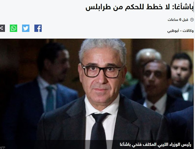 Ο προτεινόμενος Πρωθυπουργός της Λιβύης από το κοινοβούλιο, Φατχί Μπασάγκα, επιβεβαίωσε ότι δεν σχεδιάζει προς το παρόν να εργαστεί από την Τρίπολη, αφού η προσπάθειά του να μετακομίσει εκεί την περασμένη εβδομάδα πυροδότησε συγκρούσεις και φόβους για επιστροφή στην εμφύλια σύγκρουση σε μεγάλη κλίμακα.