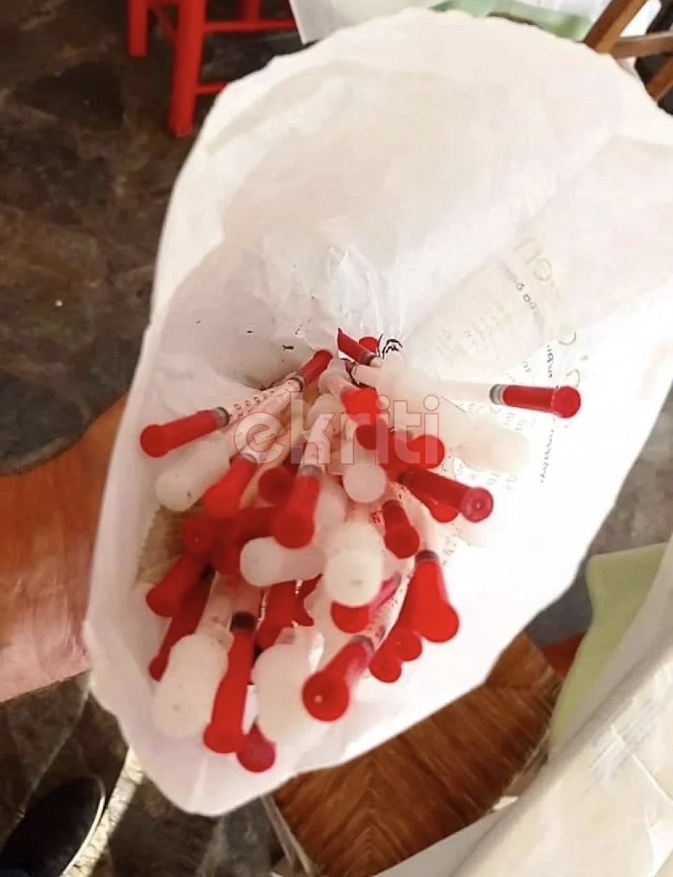 Σύμφωνα με το ekriti, ο προϊστάμενος της Διεύθυνσης Δημόσιας Υγείας της Περιφέρειας Κρήτης Μανώλης Λουμπούνης, δήλωσε μιλώντας στο Ράδιο Κρήτη ότι πρόκειται για αχρησιμοποίητες σύριγγες.