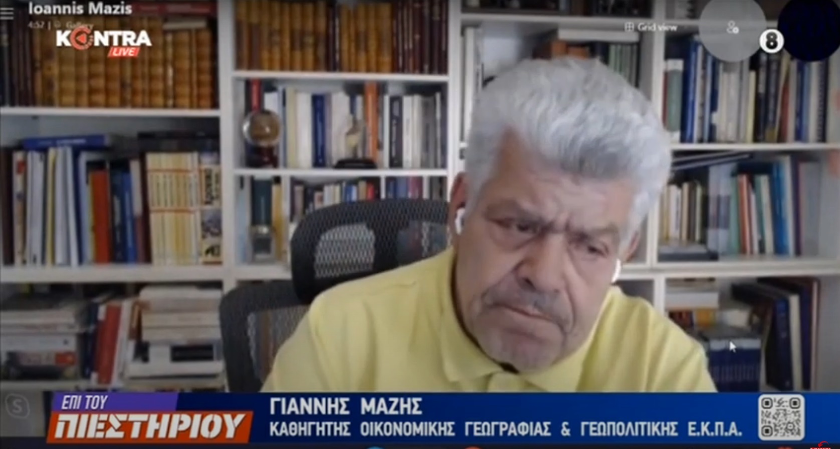 Ο καθηγητής Ιωάννης Μάζης Καθηγητής Οικονομικής Γεωγραφίας και Γεωπολιτικής στο Πανεπιστήμιο Αθηνών και Πρόεδρος του Τμήματος Τουρκικών Σπουδών και Σύγχρονων Ασιατικών Σπουδών ΕΠΙ ΤΟΥ ΠΙΕΣΤΗΡΙΟΥ με τον Γιώργο Σιαδήμα και τον Βασίλη Σκουρή